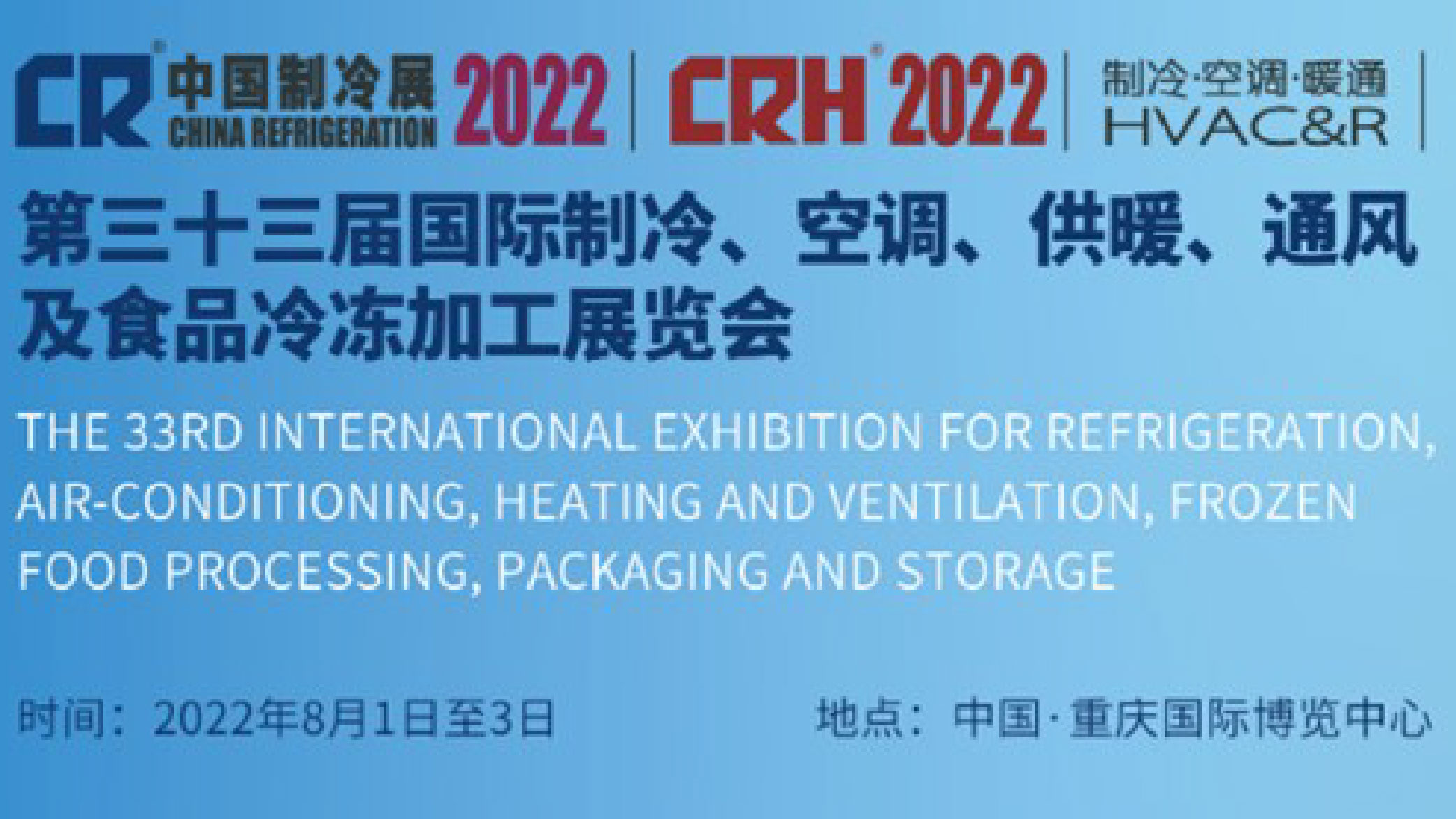 - 2022年春季,鑒于國內疫情形勢的嚴峻和復雜性,各地展會等大型活動紛紛按下“暫停鍵”,其中也包括原定于2022年4月在重慶國際博覽中心舉行的第三十三屆中國制冷展,為了切實保障參展商及觀眾的健康安全,將延期至8月
